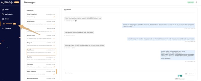 There, you will find both new messages and your previous conversations with dropshippers.
