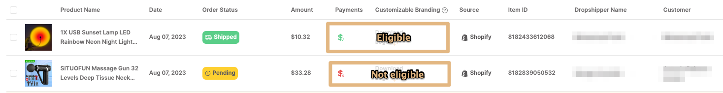 Orders become eligible for payment 3 days after adding a valid tracking number.