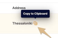 Displays the customer’s shipping address. 💡 Tip: You can easily copy the address by clicking the copy button next to it. ![]() |
